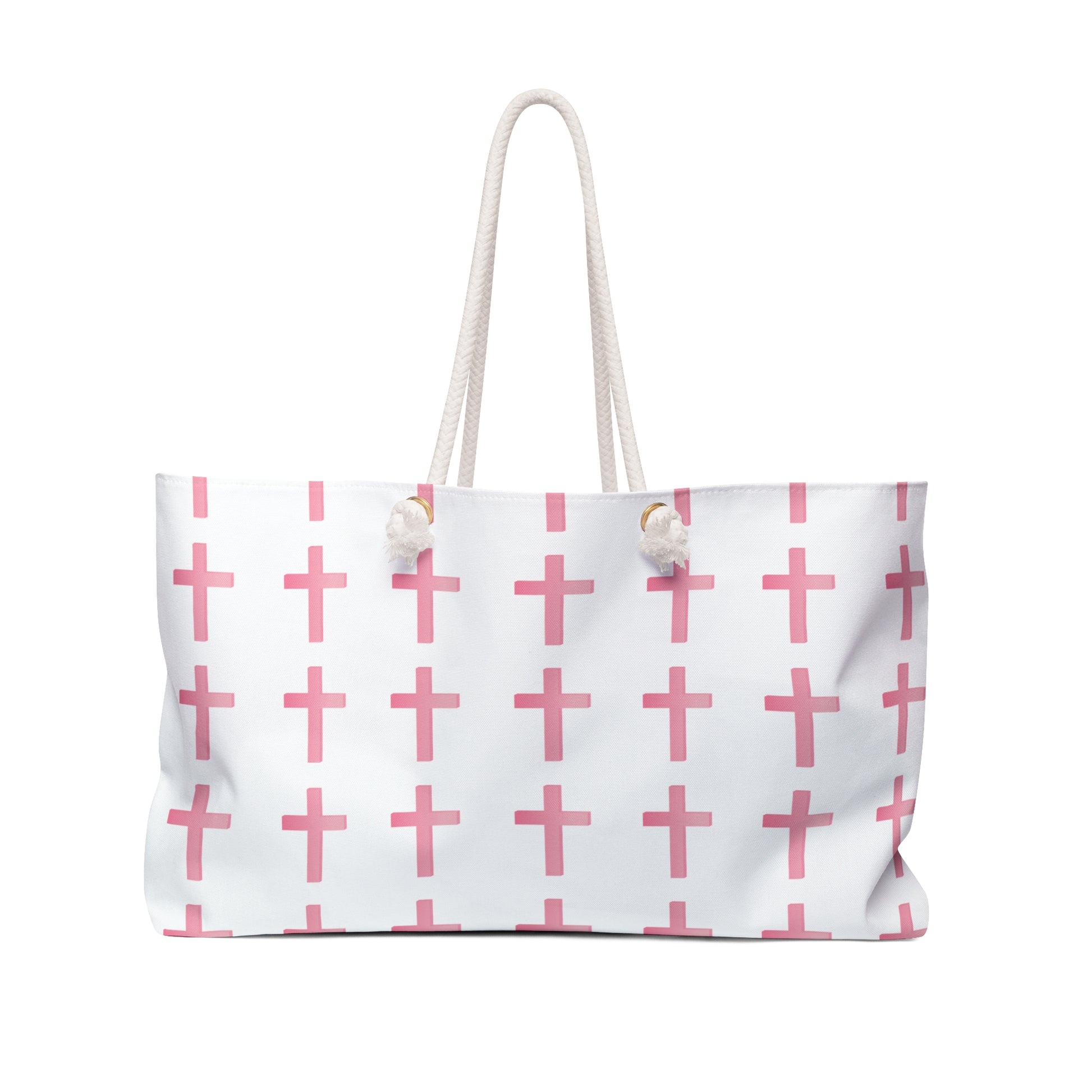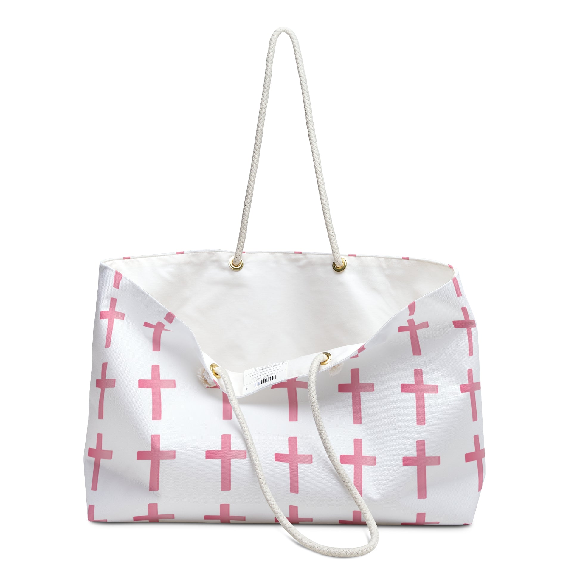 Our oversized Weekender Tote is perfect for your weekend at the beach or in town. The wide-mouthed, durable bag holds a generous amount of personal items and is easily held by its thick rope handles.